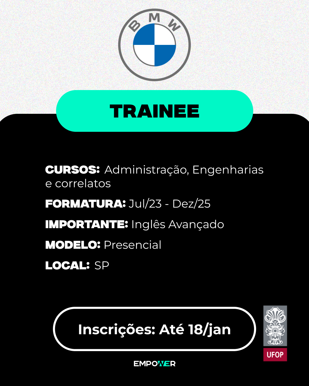 Cursos Aceitos: Gestão, Negócios e Logística, Matemática Aplicada e Computacional, Tecnologia da Informação e Computação, Dados, Inteligência Artificial e Analytics, Desenvolvimento de Software e Aplicações Digitais, Engenharias e Tecnologia Industrial