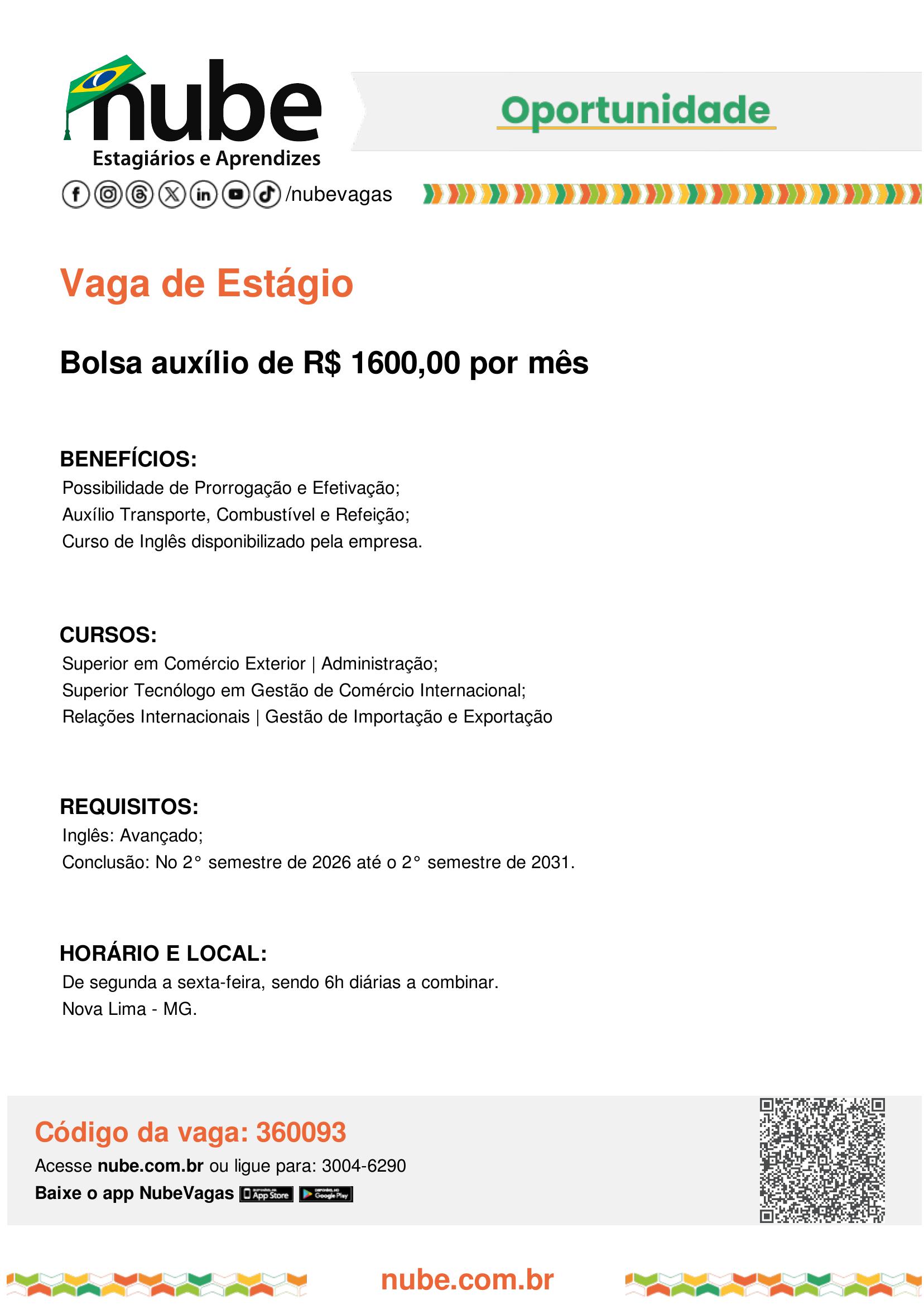 Cursos Aceitos: Administração, Ciências Econômicas, Comércio Exterior