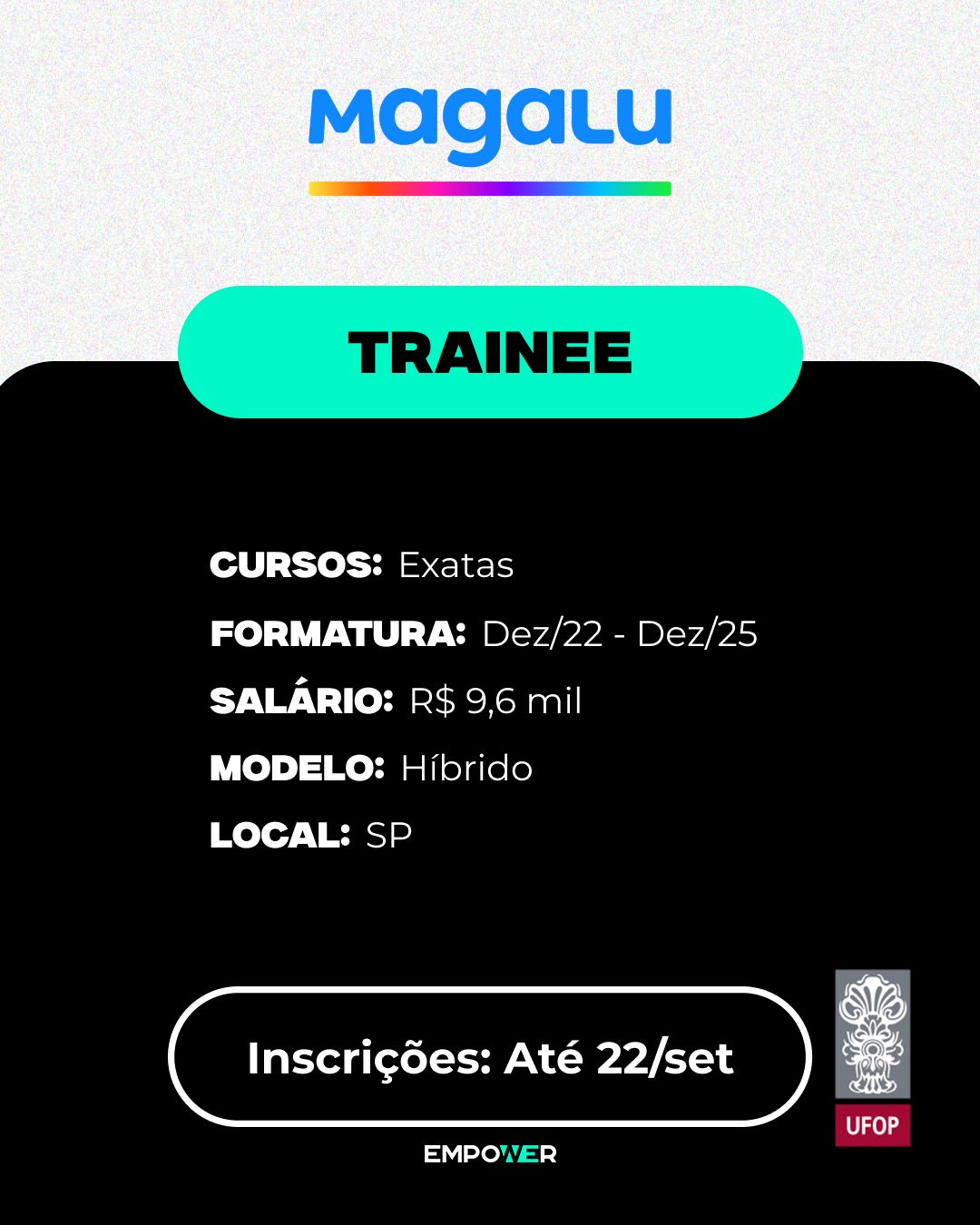 Mais informações e inscriçoes no link: https://link.empower.vision/TMagalu