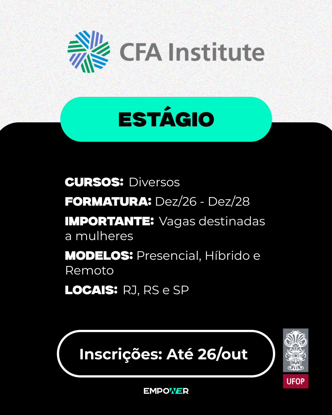 Mais informações e inscrições em: http://link.empower.vision/EstagioYpe