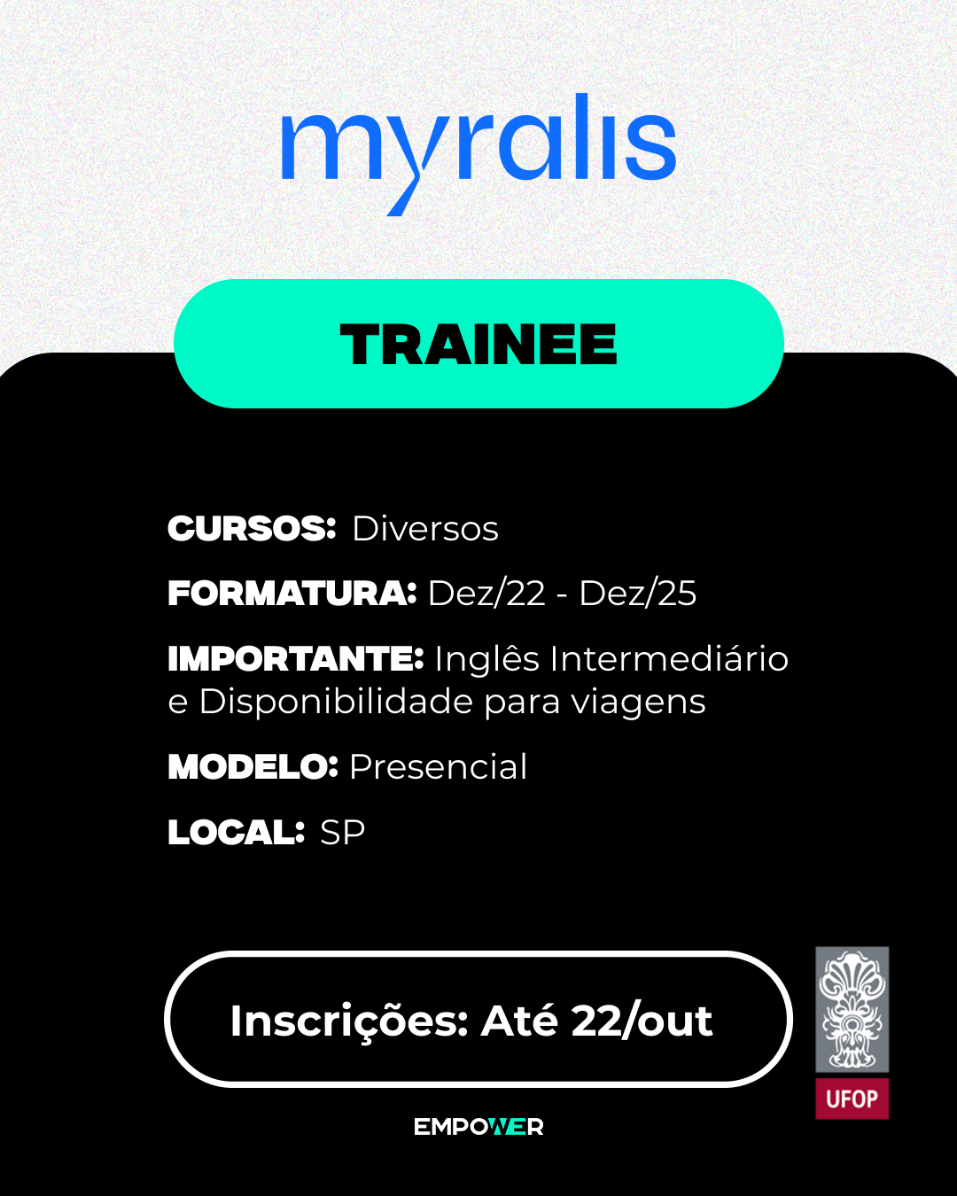 Mais informações e inscrições no link: https://link.empower.vision/TMyralis
