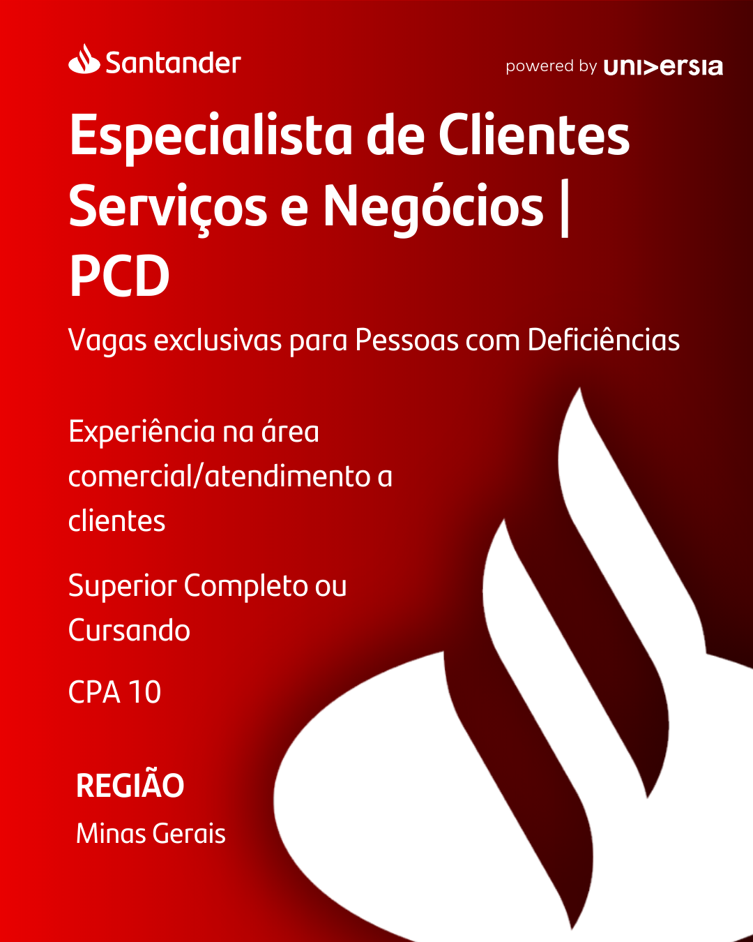 Chegou seu momento de ser Especialista de Clientes Serviços e Negócios Santander | Exclusivo para PCD