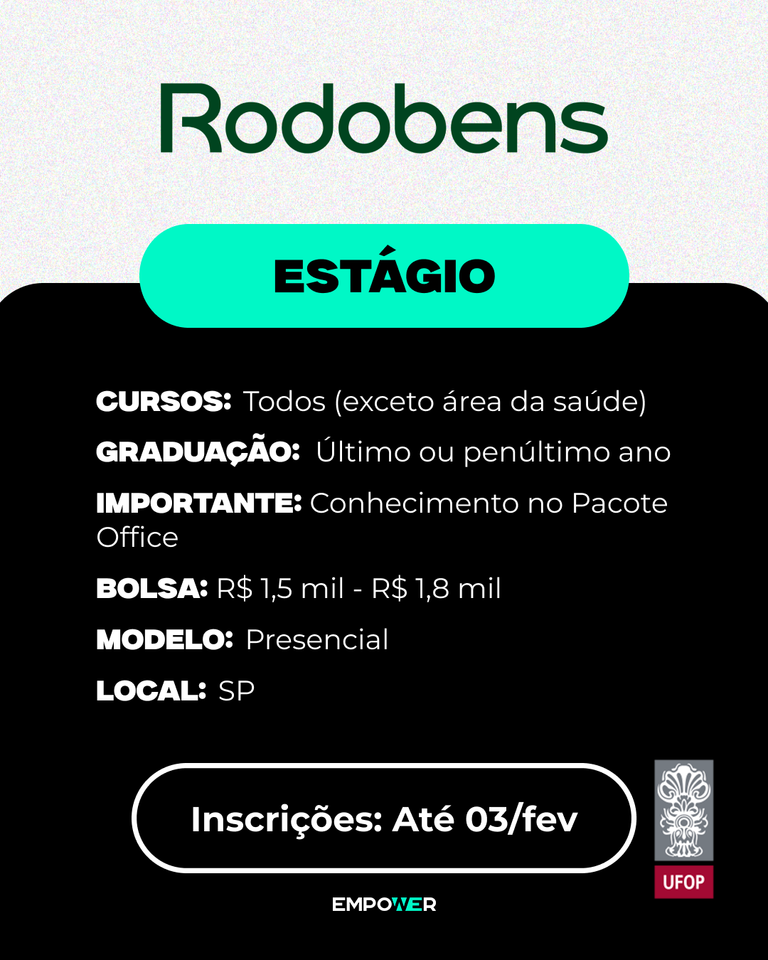 Cursos Aceitos: Administração, Ciências Econômicas, Comércio Exterior