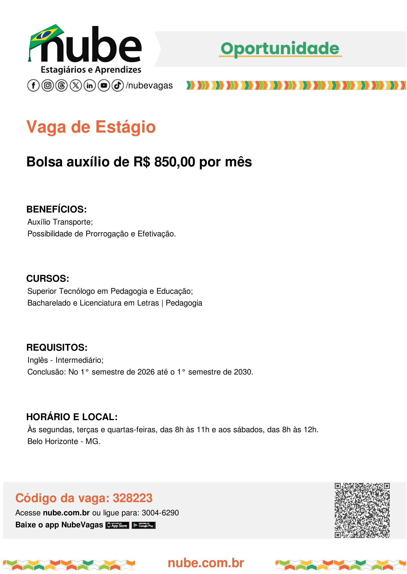 As inscrições estão abertas até 30/11 e as vagas estão disponíveis nas seguintes áreas:
