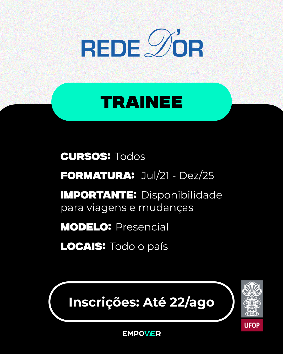 A SulAmérica e a Rede D’Or, dois dos maiores grupos do Brasil nos setores de saúde, seguros e investimentos, estão com inscrições abertas para seu Programa de Trainee em conjunto, que busca formar novos talentos para atuar como futuras lideranças das duas organizações.