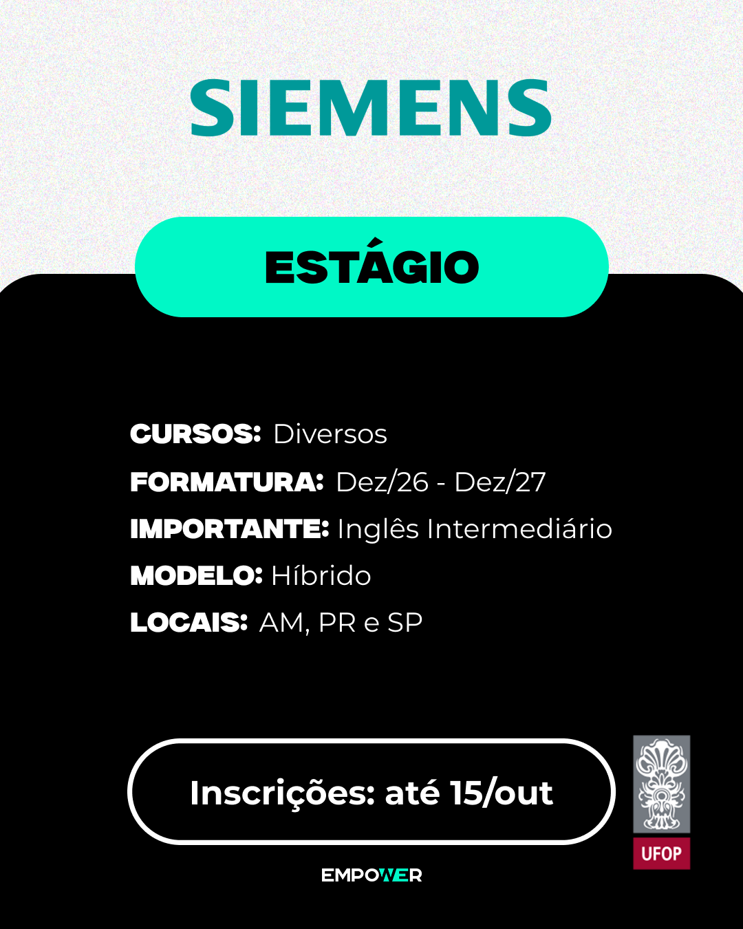 Mais informações e inscrição no link: https://link.empower.vision/EstagSiemens